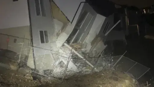 The collapses were documented in videos taken by police officers and firefighters, who went to the scene after sections of a retaining wall holding back soil fell apart and the homes began making noises.