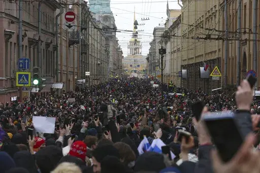 NEW YORK (AP) — When Alexei Navalny was arrested in January 2021, tens of thousands of Russians filled the streets in protest, demanding that the top Kremlin critic be released and chanting slogans against President Vladimir Putin. Thousands were arrested.