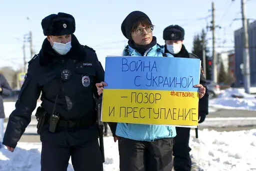 Antiwar marches of protesters chanting “No to war!” occurred in Moscow, St. Petersburg and elsewhere after the Feb. 24 invasion, with more than 15,000 people detained, according to the OVD-Info rights group that tracks political arrests.