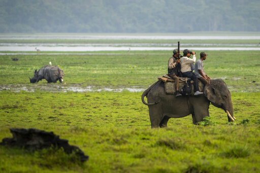 Nearly 400 men using 50 domesticated elephants and drones scanned the park’s 500 square kilometers (190 square miles) territory in March and found the rhinos' numbers increased more than 12% — neutralizing a severe threat to the animals from poaching gangs and monsoon flooding.