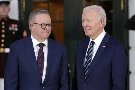 WASHINGTON (AP) — President Joe Biden described Australia as “an anchor to peace and prosperity” while standing alongside Prime Minister Anthony Albanese at the White House on Wednesday, part of a state visit intended to deepen an alliance that's increasingly viewed as a critical counterweight to China's influence in the Pacific.