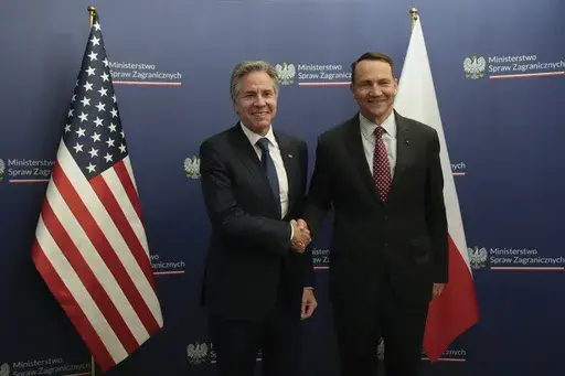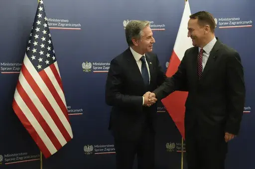 NATO member Poland, which shares a border with Ukraine, has been supportive of the Ukrainians and Blinken heard requests for easing weapons-use restrictions from Polish Foreign Minister Radek Sikorski.