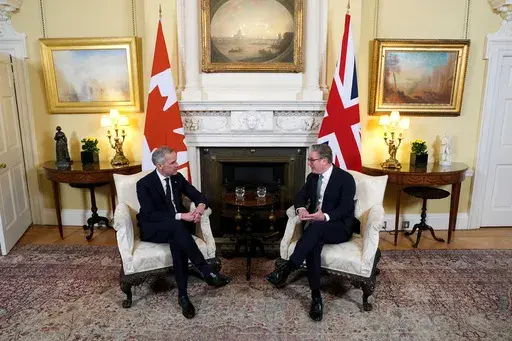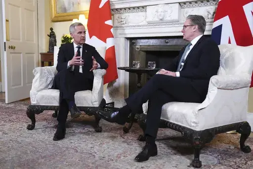 “The relationship between our two countries has always been strong," Starmer told Carney inside the British leader's 10 Downing St. residence. “Two sovereign allies, so much in common — a shared history, shared values, shared king.”