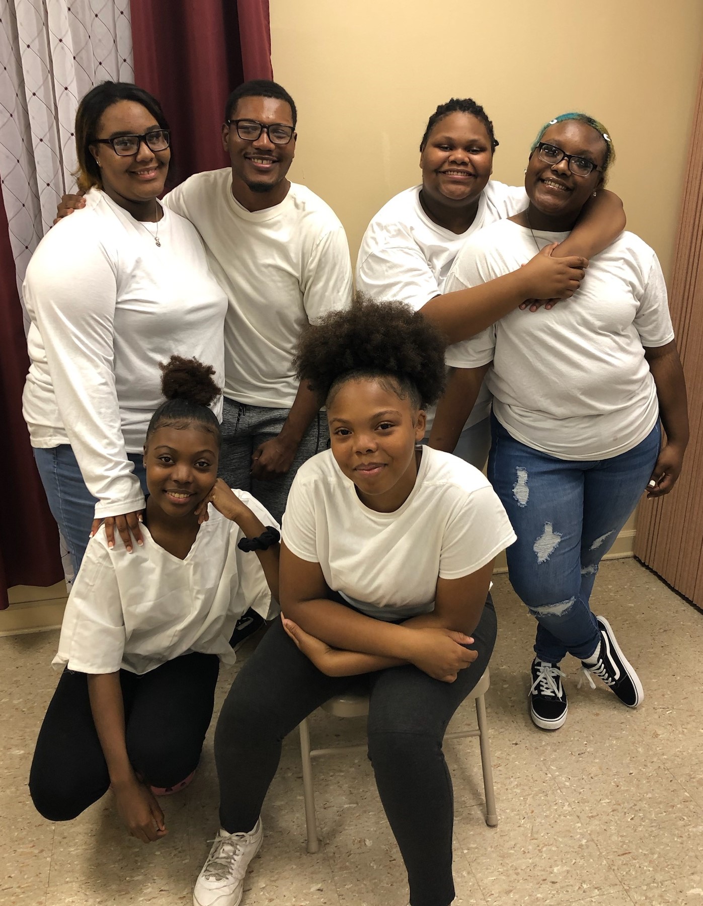 The Young Steppers/Performers announce their 2022-2023 officers: Seated: Mia James, president; Deja James, event coordinator; Standing left to right: Jeremiah Winters, secretary; Robert Cook, treasurer; Tyeisha Mosley, parliamentarian; and Kaitlin Frison, vice president. Not pictured is Ariya Russell, assistant secretary. The Steppers’ plans for their new year, in addition to Arts, small theatre, dancing and speaking, include community programs, group performances, local Black history research, and play writing, along with a major project of research into the era of Minnie Cox and Rasberry UM Church.