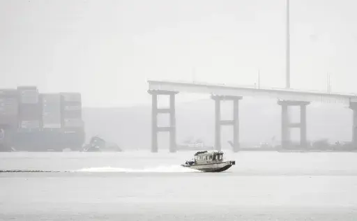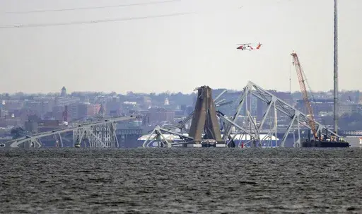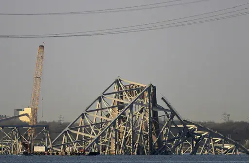 BALTIMORE (AP) — A crane that can lift 1,000 tons, described as one of the largest on the Eastern Seaboard, appeared near the site of a collapsed highway bridge in Baltimore as crews prepared Friday to begin clearing wreckage that has stymied the search for four workers missing and presumed dead and blocked ships from entering or leaving the city's vital port.