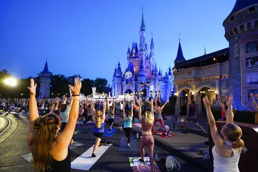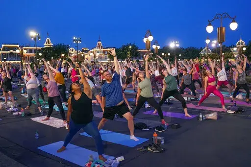 LAKE BUENA VISTA, Fla. (AP) — Disney workers traded their character costumes for yoga pants early Tuesday and planked, did the downward dog and folded into lotus poses at Walt Disney World in Florida to celebrate International Yoga Day.