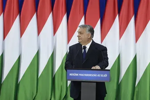 BUDAPEST, Hungary (AP) — Hungarian Prime Minister Viktor Orbán sought to contain the political fallout of a presidential pardon scandal during an annual state of the nation address on Saturday, his first public appearance since Hungary's president, his ally, resigned a week ago.