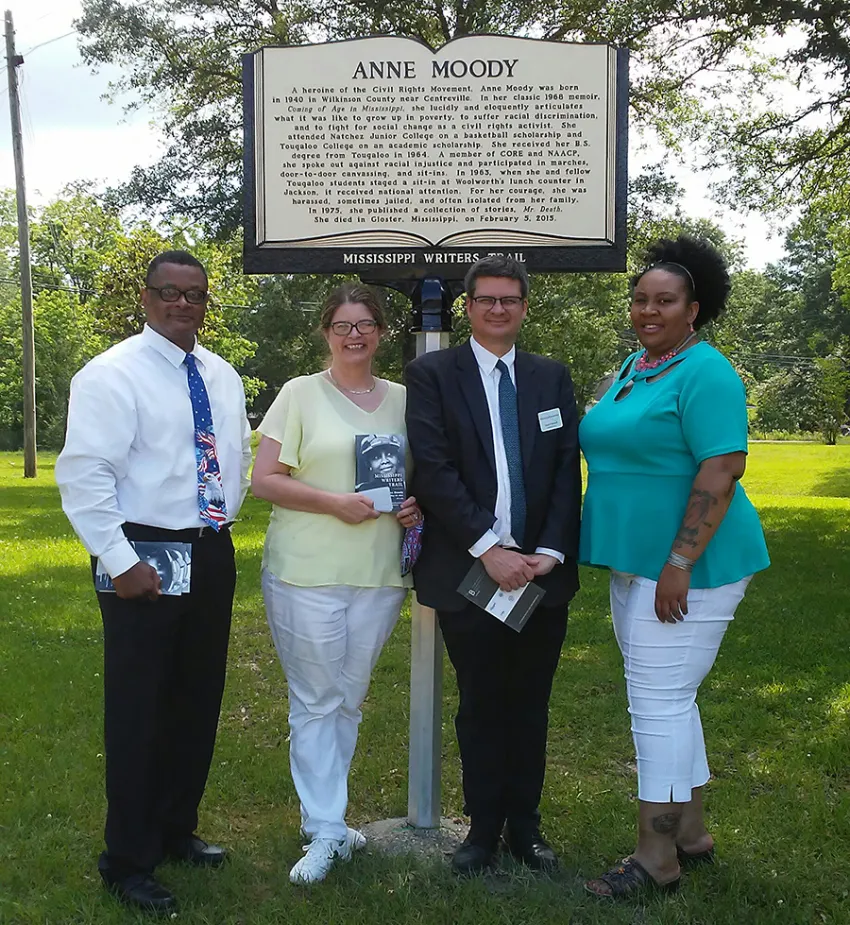 From left are: Dr. Roscoe Barnes III, cultural heritage tourism manager for Visit Natchez; Maggie Lowery, cultural programs manager for Visit Mississippi; Dr. Stuart Rockoff, executive director of the Mississippi Humanities Council; and Centreville Alderwoman Felicia Williams. Funding for the project was made possible by a grant from the National Endowment of the Humanities.