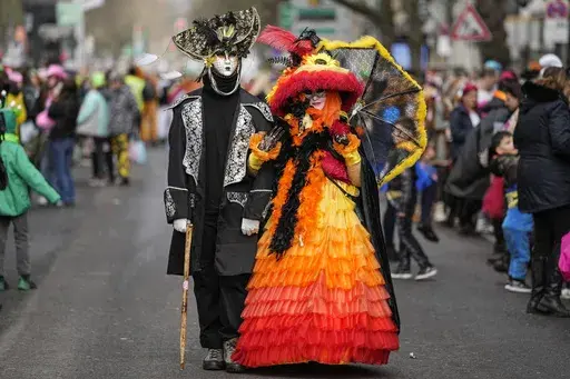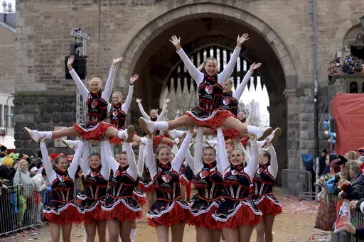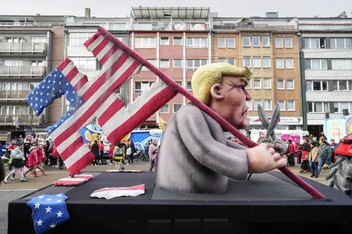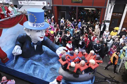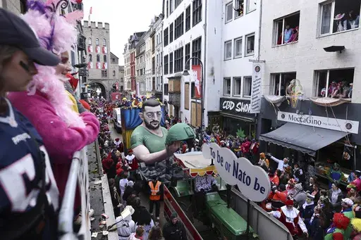 DUESSELDORF, Germany (AP) — Throngs of revelers took to the streets of Germany's Carnival strongholds on Monday, accompanied by floats that satirized the Ukrainian and Russian presidents, German politicians, former U.S. President Donald Trump and many others.