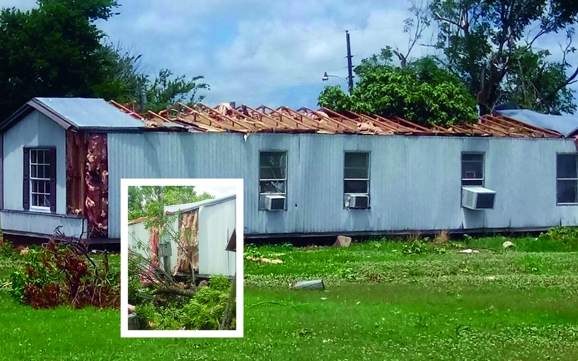 By the time the storm passed, half of the roof on the trailer was in a field over 100 yards away.