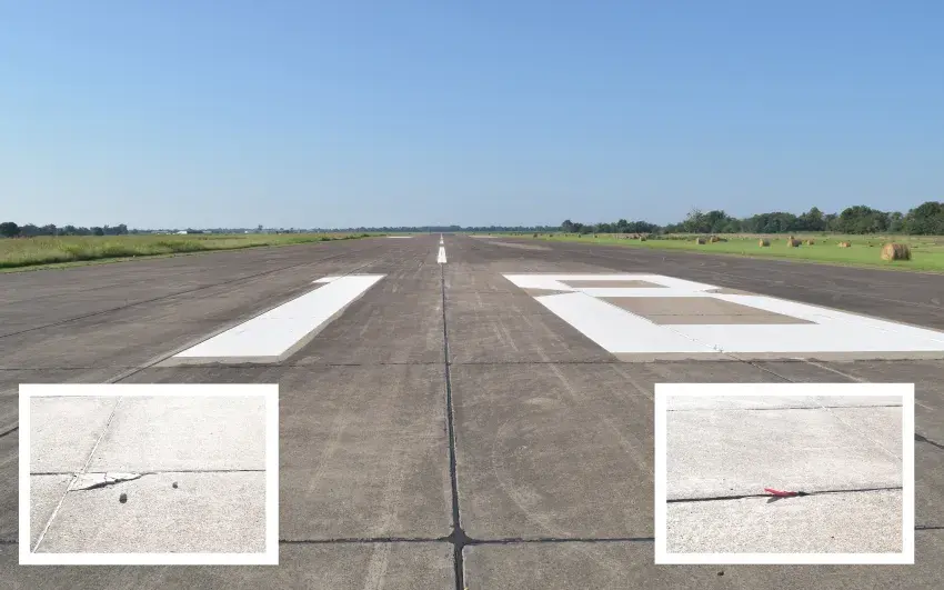 The Indianola airport has 7,000 feet of concrete runway and is 150 feet wide that’s 12 panels across,