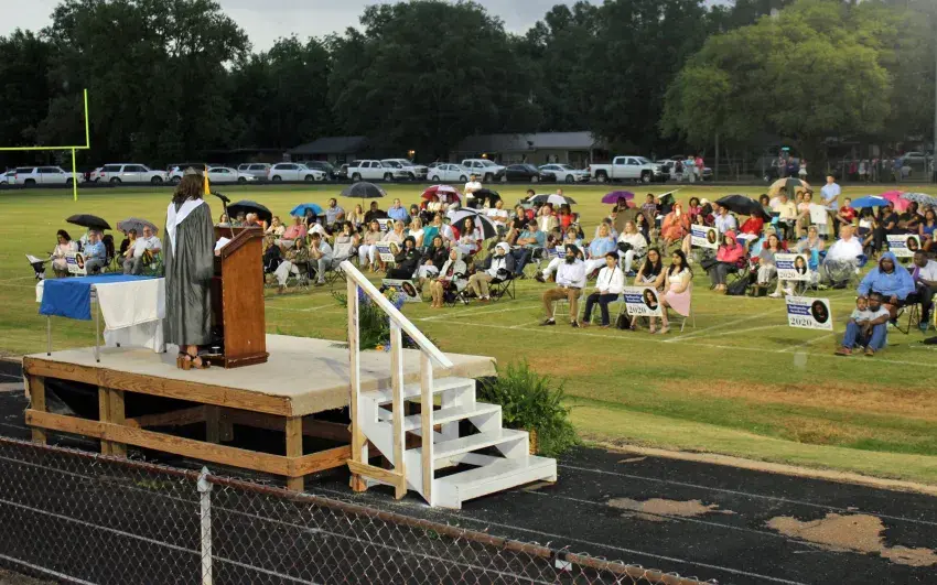The ceremony was held on Legion Field. Seniors sat in the bleachers at a distance from one another, and family members were placed in sections on the football field.