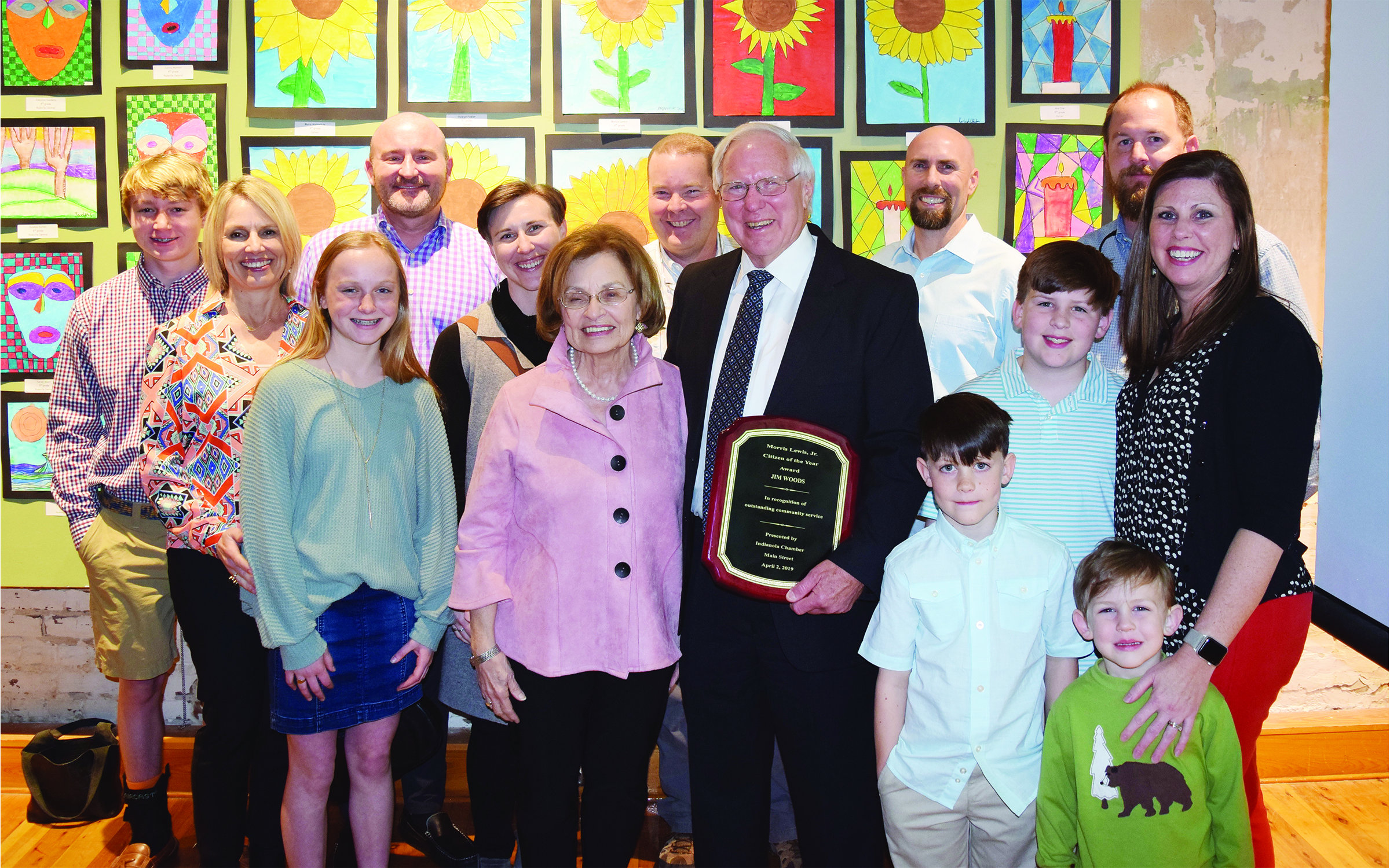 Jim Woods is joined by his wife Nancy Woods and his family after receiving the 2019 Morris Lewis Citizen of the Year award.