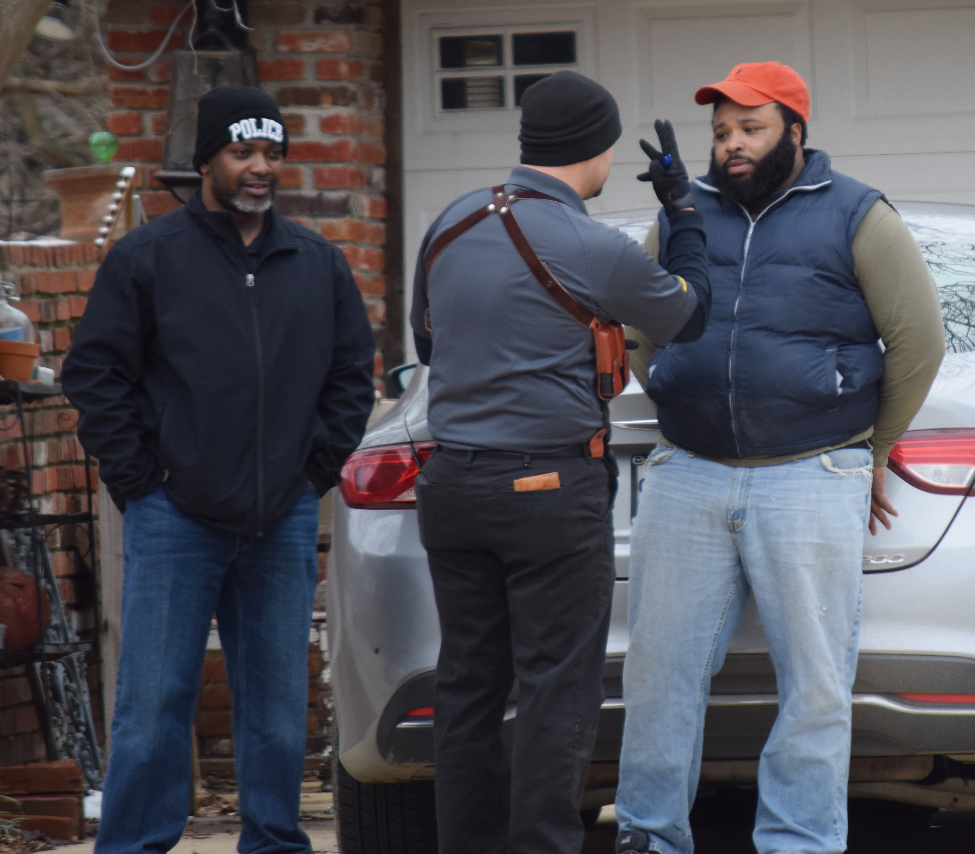 Pictured above, Timothy Jones stands in handcuffs as a member of the Mississippi Bureau of Investigation talks to him. (Photo by Recardo Thomas)