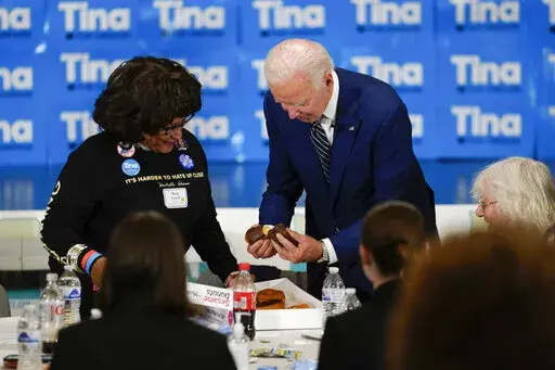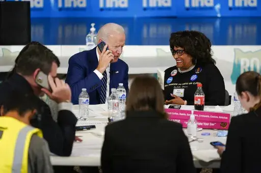 During a phone bank for Oregon Democrats in a crowded union hall, Biden grabbed Kotek’s hand and the two walked to the center of the room as volunteers cheered.