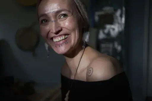 The shaman, who has Inuit facial tattoos, works with spiritual healing practices to help people connect with their ancestors and heal generational trauma. A sign outside her studio in the Greenland capital of Nuuk conveys her role: “Ancient knowledge in a modern world.”