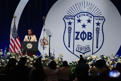 INDIANAPOLIS (AP) — Vice President Kamala Harris told members of the historically Black sorority Zeta Phi Beta on Wednesday that “we are not playing around” and asked for their help in electing her president in November.