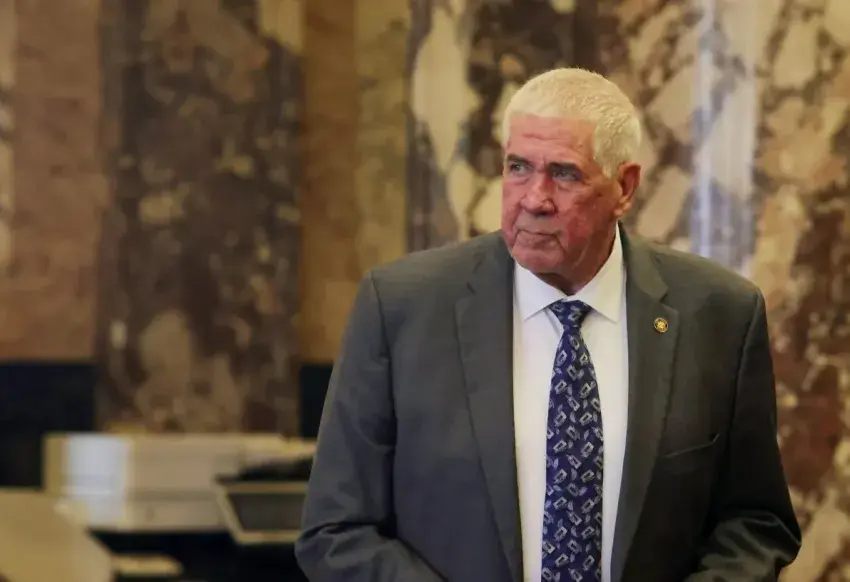 Sen. John Horhn, D-Jackson, left, and Sen. Kevin Blackwell, R-Southaven, speak during legislative session as lawmakers discuss a bill concerning Medicaid expansion at the Capitol in Jackson, Miss., Thursday, March 28, 2024. Credit: Eric J. Shelton/Mississippi Today