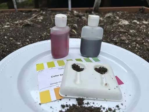 Kits typically involve applying a few drops of a chemical dye on a soil sample, waiting a minute or so, then comparing its changed color to a chart. Similarly, test strips change color when dipped into a mixture of soil and water. And pronged electronic meters provide a reading after they are inserted into the soil, sometimes with water.