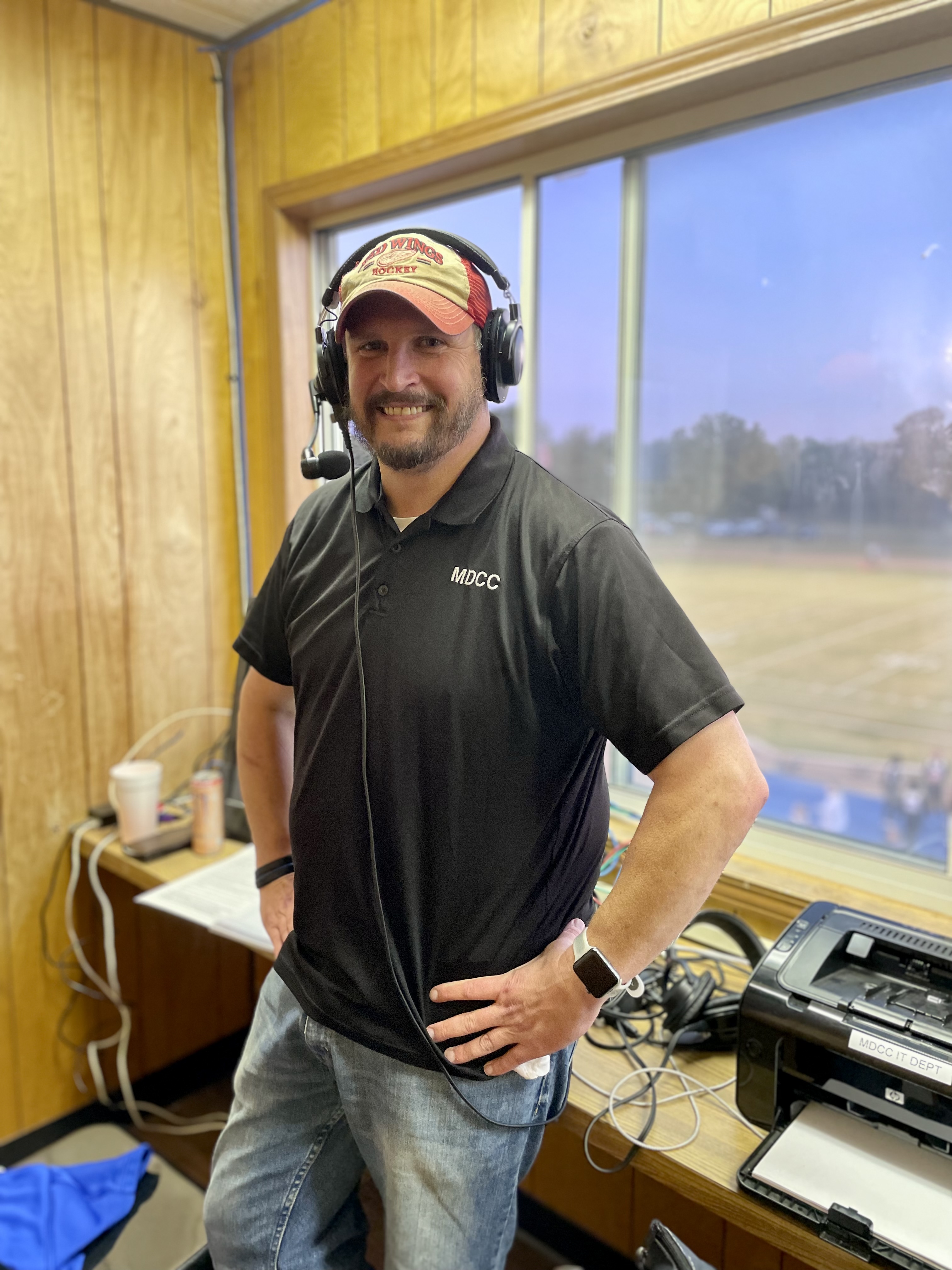 Working the radio and broadcast airways, MDCC alum Jay Gary helps paint the picture for Trojan fans every home game on Thursday nights. On Friday, you can find him on Friday nights in the Indianola Academy Colonel broadcast booth, both home and away. The Inverness native and resident spends his days on the Moorhead MDCC main campus as the Dean of Enrollment over Financial Aid, Advising, Recruiting and Admissions. But the former athlete enjoys his time behind the microphone bringing gridiron action to those who can’t make the games in person. His introduction to the broadcast booth came through a mutual friend and first on the high school level.