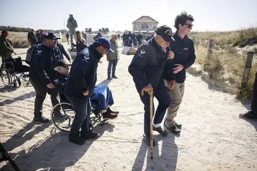 The veterans then headed to Sainte-Marie-du-Mont for a brief ceremony at a monument honoring the U.S. Navy that overlooks Utah Beach.