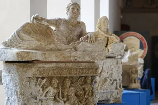 ROME (AP) — Italian authorities announced Tuesday the seizure of an illegal excavation of an Etruscan burial site in the central Umbria region and are investigating two people for suspected theft of urns, sarcophagi and other artifacts worth 8 million euros ($8.5 million) intended for sale on the black market.