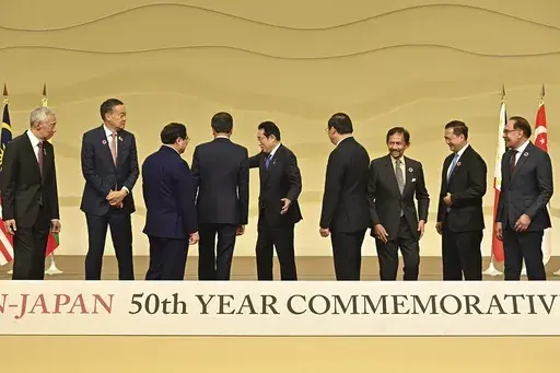 TOKYO (AP) — Leaders from Japan and the Association of Southeast Asian Nations, at a special summit in Tokyo on Sunday, adopted a joint vision that emphasizes security and economic cooperation while respecting the rule of law, amid growing tensions with China in regional seas.