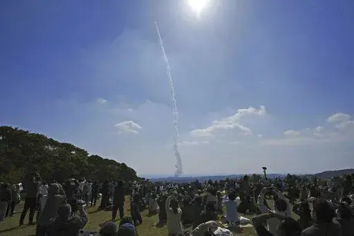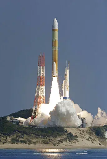 The H3 rocket with a white head blasted off and soared into the blue sky from the Tanegashima Space Center in southern Japan as fans and local residents cheered. It followed its planned trajectory and the second stage separated as designed, but the ignition for it failed, the Japan Aerospace Exploration Agency said.