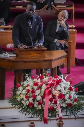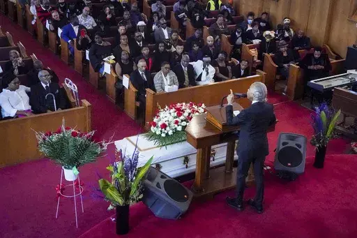 Sharpton, standing in front of a white casket with a flower arrangement on top, also condemned government policies and social service systems that he said had let Neely down and needed to be reformed.