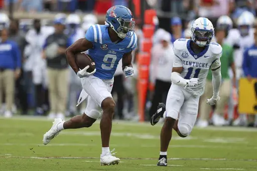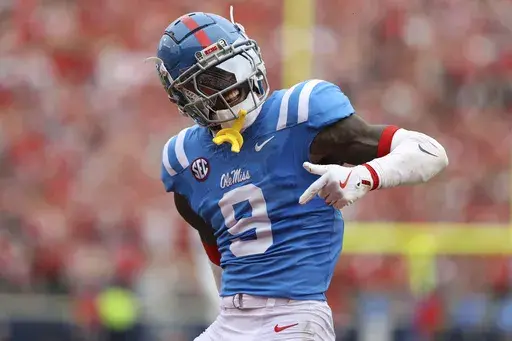 Tre Harris led the Rebels with 11 receptions for 176 yards, including a 48-yard touchdown that gave them a 17-13 lead.