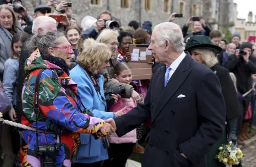 LONDON (AP) — King Charles III shook hands and chatted with onlookers after attending an Easter service at Windsor Castle on Sunday in his most significant public outing since being diagnosed with cancer last month.