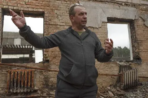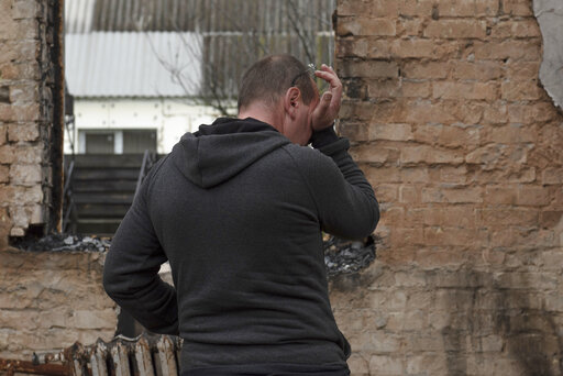 MOSCHUN, Ukraine (AP) — Standing amid the wreckage of his home, Vadym Zherdetsky shows photos on his phone of how it once looked: handsome rooms, a hand-carved wooden bed and a chest of drawers he intended to leave to his grandchildren.