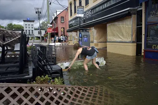 The town of Moncks Corner, South Carolina, was hit early Friday by flash flooding from the remnants of Debby, with the National Weather Service saying it received reports of up to 3 feet (0.9 meters) of fast-moving water in roadways.