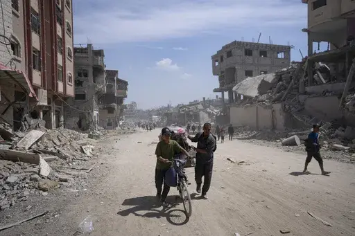 AP video in Khan Younis showed some people returning to a landscape marked by shattered multistory buildings and climbing over debris. Cars were overturned and charred. Southern Gaza’s main hospital, Nasser, was in shambles.