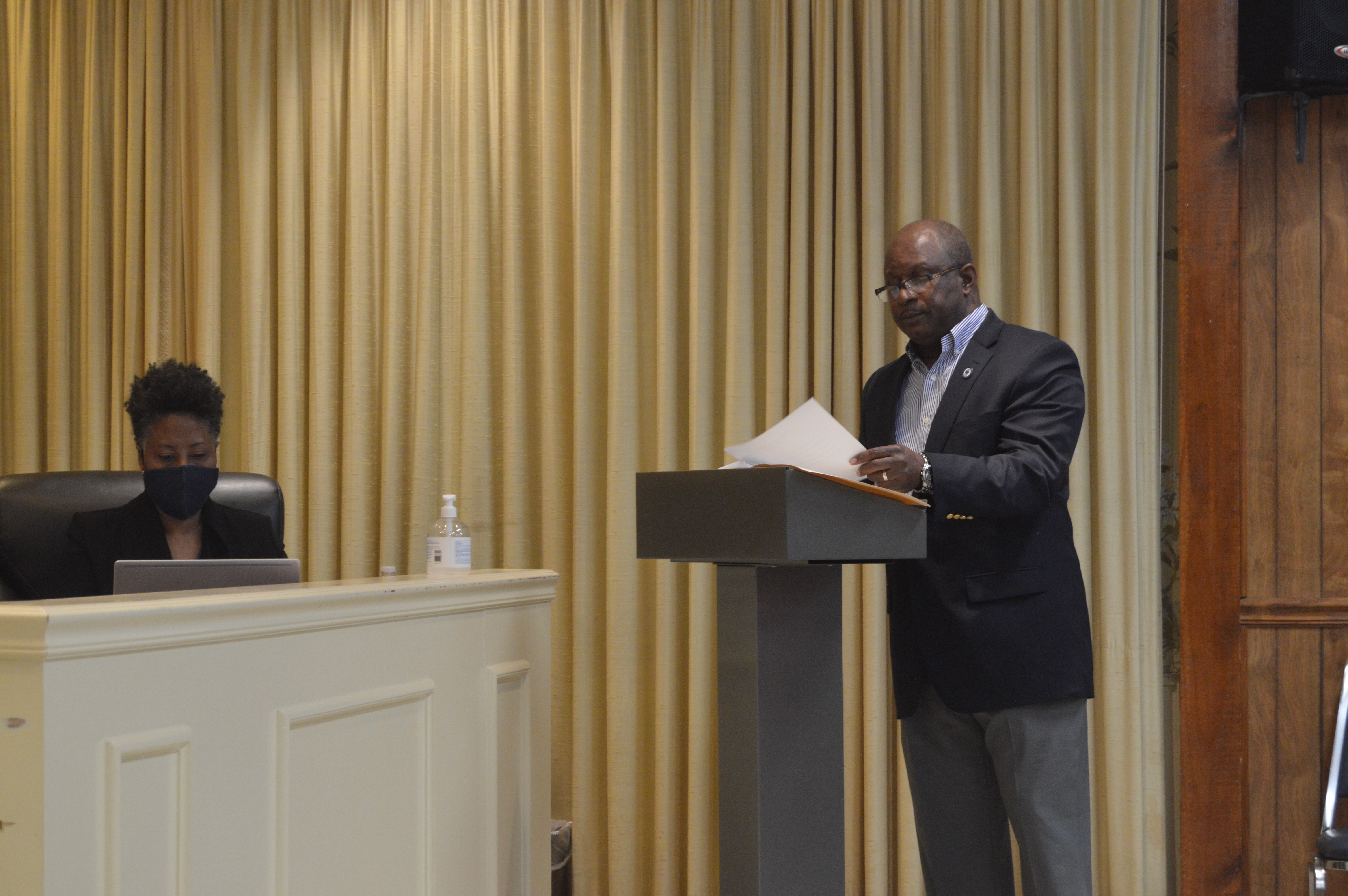 District 1 Supervisor Glenn Donald appeared before the Indianola Board of Aldermen on behalf of Temple of Deliverance Missionary Baptist Church to ask for building permits on Lucille Street and Delta Blues Street.