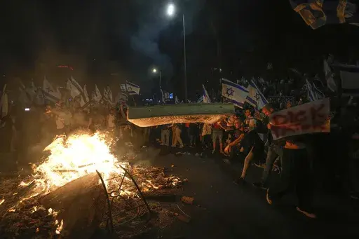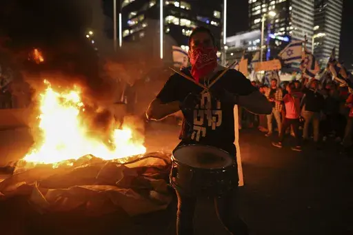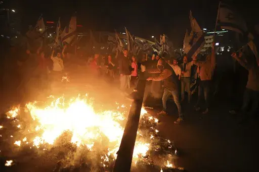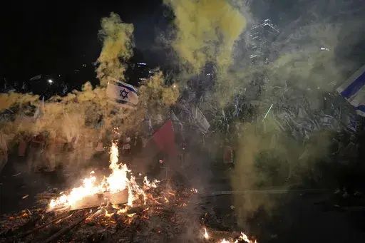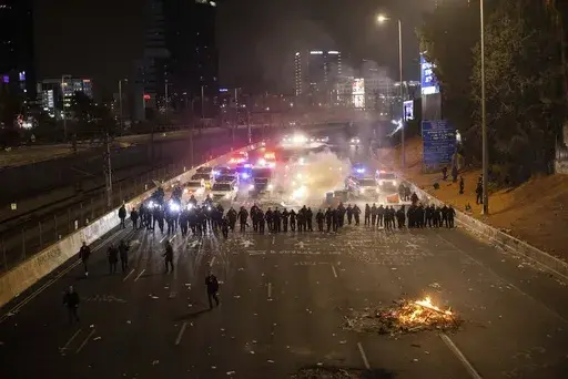 Protesters in Tel Aviv blocked a main highway and lit large bonfires, while police scuffled with protesters who gathered outside Netanyahu's private home in Jerusalem.