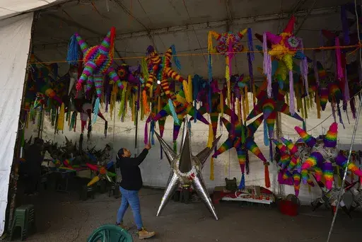 ACOLMAN, Mexico (AP) — María de Lourdes Ortiz Zacarías swiftly cuts hundreds of strips of newsprint and colored crepe paper needed to make a piñata, soothed by Norteño music on the radio while measuring pieces by feel.