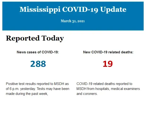 Listed below is the daily COVID-19 update for the state of Mississippi.