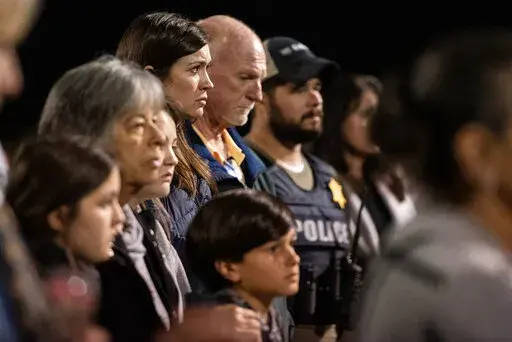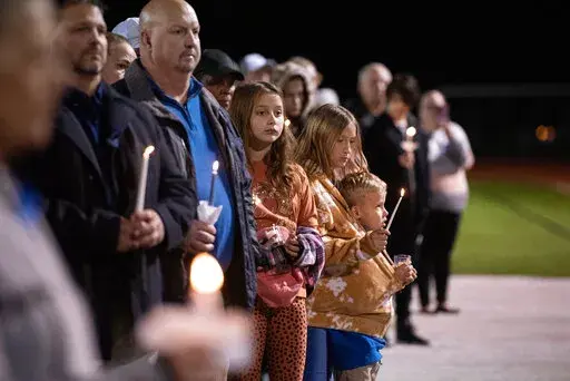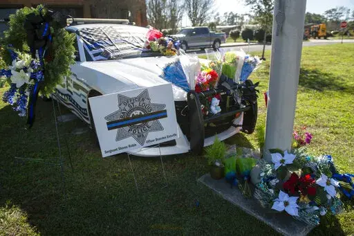 The two officers will be buried in a joint funeral on Wednesday in Bay St. Louis, even as tributes to their service continue. Hundreds of people gathered for a candlelight vigil Thursday at a high school in Bay St. Louis, a city of 10,000 people about 25 miles (40 kilometers) west of Biloxi. They included Robin's wife, Estorffe's father and sister, and other relatives.