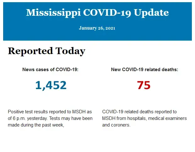 Listed below is the daily COVID-19 update for the state of Mississippi.