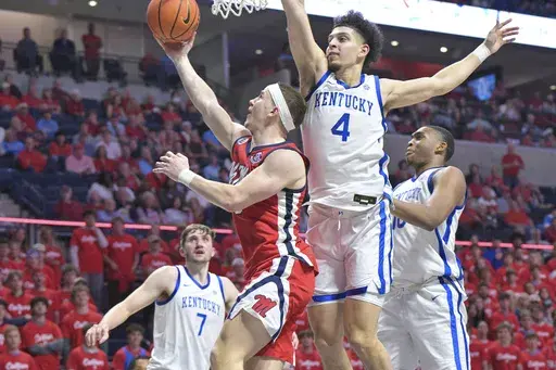 The Rebels, averaging eight 3-pointers per game, had nine in the first half and finished 13 of 30. Ole Miss outscored Kentucky 9-0 off turnovers, winning the turnover margin 8-1.