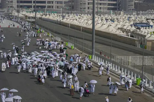 MINA, Saudi Arabia (AP) — In sweltering temperatures, Muslim pilgrims in the Saudi city of Mecca converged on a vast desert tent camp Friday, officially starting the annual Hajj pilgrimage. Earlier, they circled the cube-shaped Kaaba in the Grand Mosque, Islam’s holiest site.