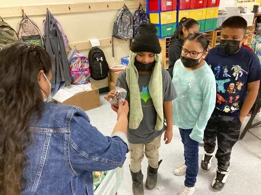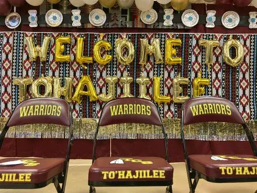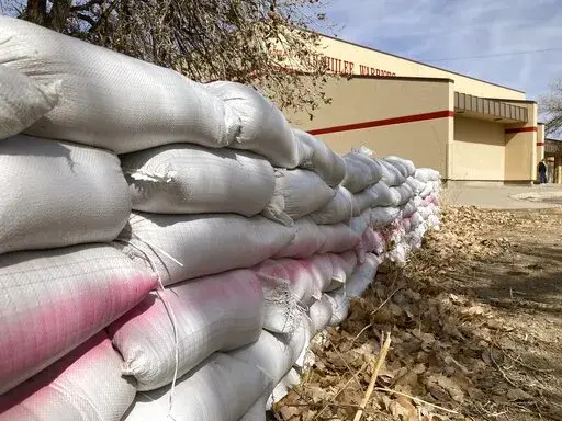 TO'HAJIILEE, N.M. (AP) — A school tucked into the sandstone cliffs and juniper-dotted mesas of central New Mexico is fortified on one side by a wall of sandbags and an earthen berm. On the other side, melting snow puddles along the edges of classrooms.
