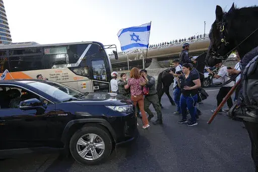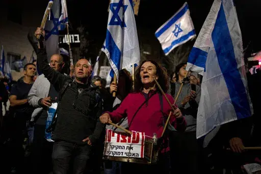 JERUSALEM (AP) — Prime Minister Benjamin Netanyahu and his allies on Thursday denounced protesters as “anarchists” after they massed outside a Tel Aviv salon where his wife was getting her hair done — a chaotic end to a day of demonstrations against the government's plan to overhaul the judiciary.