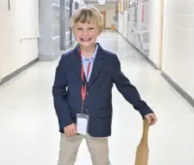 Drake Eubanks enjoyed his day as "Headmaster" at NSA recently. This first grader fearlessly corrected the