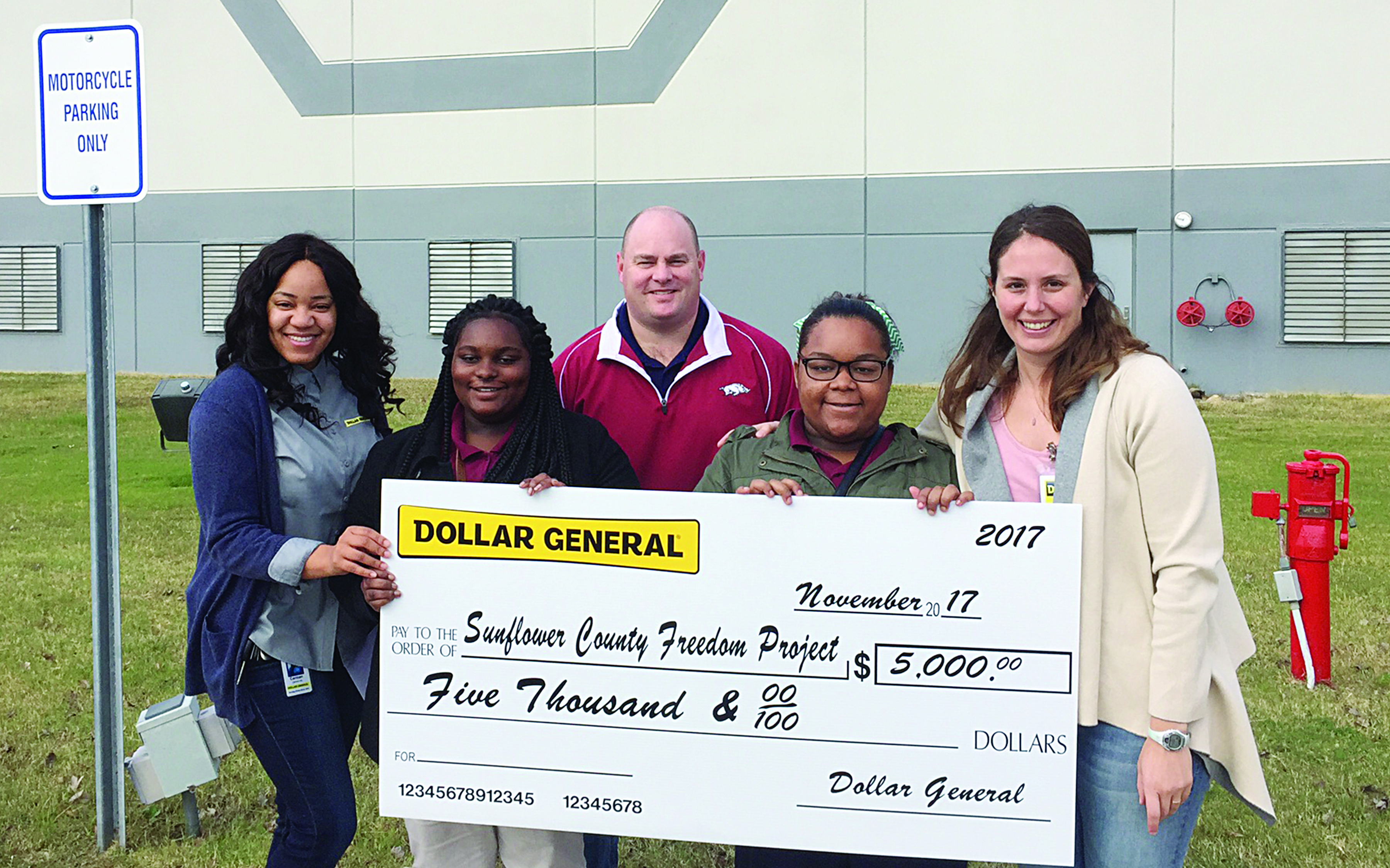 Dollar General has made two large donations in Sunflower County recently, one to the Friends of the Henry M. Seymour Library and the other to the Sunflower County Freedom Project. Each received $5,000. On the left, pictured from left are Harli Eaves, Lanessia Johnson, Jennifer Rose, Mary Ann Griffin, Chris Murabito, Vickie Lewis, Cindy Baird, Nita Dill, Kay Slater, Robin Rosenthal, Steve Rosenthal, Twanna Cobbs, Katie Patterson, Susan Wilson and Carmen Hill. To the right, pictured from left are Hill, Murabito, two student participants in the Freedom Project and Kate Gluckman.