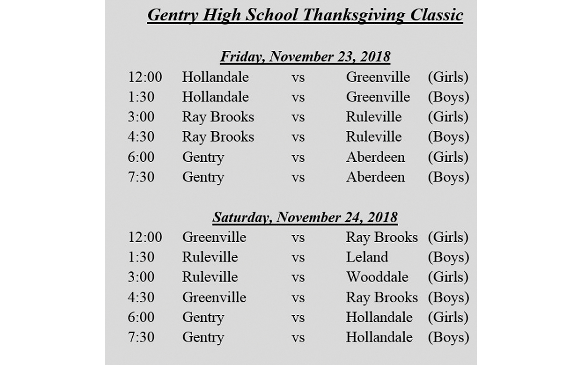 With Thanksgiving Day looming, the Gentry High basketball teams will be hosting their own tournament this weekend.