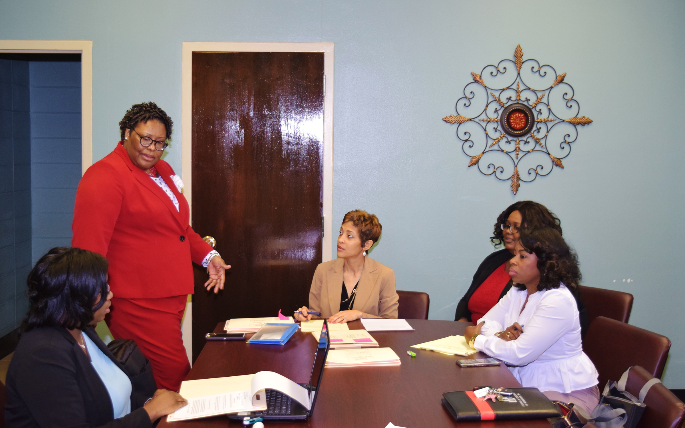 Sub district 9-2 Chancery Judge Debra Giles held her first Pro Se Day last Thursday at the Sunflower County Courthouse. Giles is meeting with law student Kaylyn Caston and attorneys Gayla Carpenter-Sanders, Gwendolyn Jimison and Tanisha Gates.
