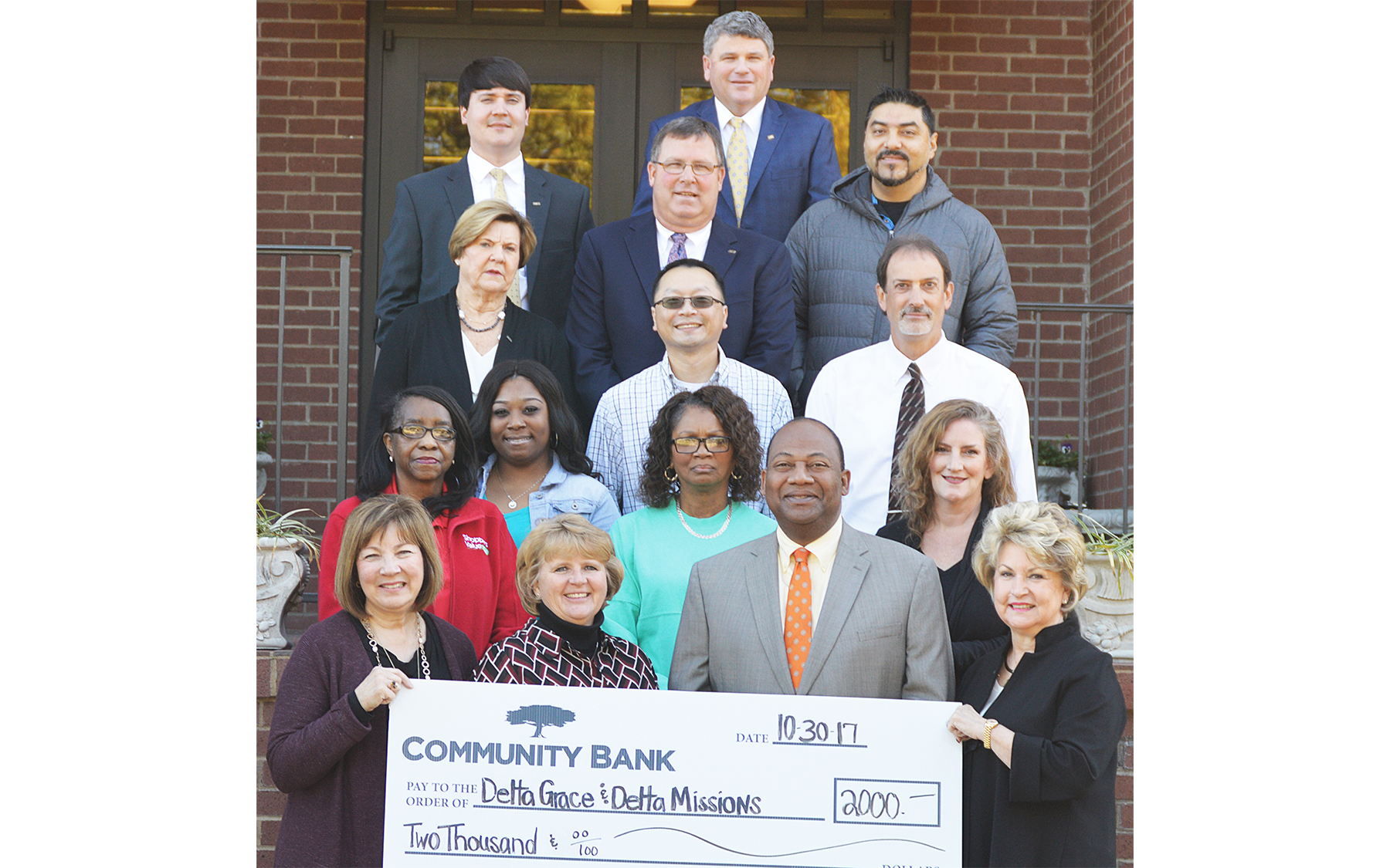 Community Bank, North Mississippi-Indianola location recently held its Taste of Indianola event, which raised $2,000 for two area missions, Delta Missions and Delta Grace. Each have received $1,000. Rev. Herron Wilson of Delta Missions said the money will help the organization with its annual Vacation Bible School it holds each summer. In 2016, Wilson said there were over 300 youth in attendance. Rev. Veronica Pritchard of Delta Grace said the $1,000 will help the mission put a roof on a local home in need of repair. Pictured in the front row from left are Susan Wilson (Community Bank), Pritchard, Wilson and Cindy Baird (Community Bank). In the second row from left are Dorothy McDuffy, Felicia Bush, Karen Farrow and Jennifer Schaumburg. In the third row are Paula Prysock, Hong Chow and Jeff McKnight. In the fourth row are Justin Theunissen, Alan McCaskill, Juan Amaro & Mitchell Hill. Photo by: Bryan Davis