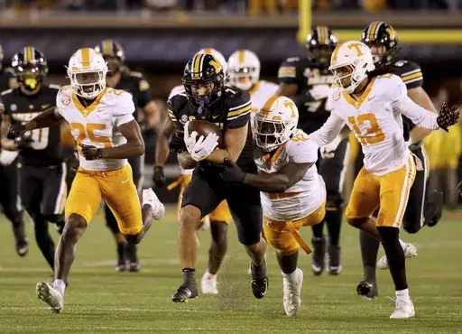 Missouri running back Cody Schrader rushed for a career-high 205 yards on 35 carries in the blowout of Tennessee and had 116 yards receiving. He’s the first player in SEC history with 200 yards rushing and 100 receiving and just the 10th in the Football Bowl Subdivision to do so. Schrader has surpassed 100 yards rushing in four of the past five contests to lead the SEC with 1,124 yards and rank seventh in FBS. He has 11 touchdowns.